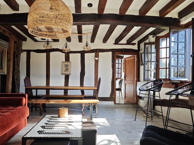 Longère Normande authentique rénovée, à la décoration atypique avec cour et jardin dans un environnement calme et fleuri pour des moments familiales ou romantiques